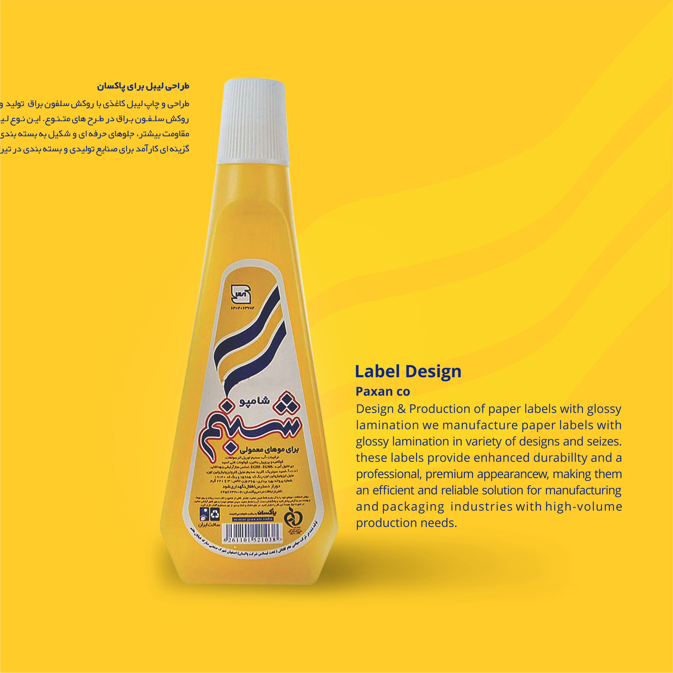 طراحی و چاپ لیبل شامپو و مواد شوینده با استفاده از لیبل کاغذی با روکش سلفون براق در طرح های متنوع ارائه می شود ، این نوع لیبل ها علاوه بر دوام ومقاومت بیشتر، جلوه ای حرفه ای و شیک به بسته بندی محصولات بخشیده و گزینه ای کارآمد برای صنایع تولیدی و بسته بندی در تیراژ بالا محسوب می شوند.